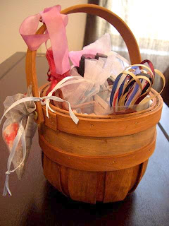 it's the basket full of things i'm taking to my consignment meeting tomorrow! it's all lookin' so cute in that little basket :).